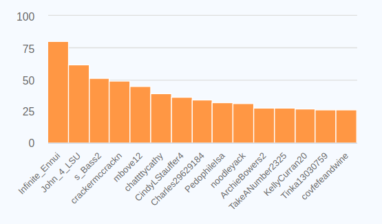 Above, a chart we compiled of the top Twitter users tweeting the “#StopTheSteal” hashtag.