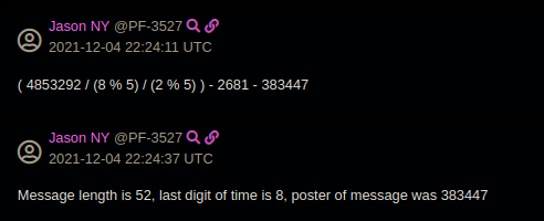 This formula makes use of the identifier given to users within RocketChat, the chat platform, as well as other identifying artifacts for a message.